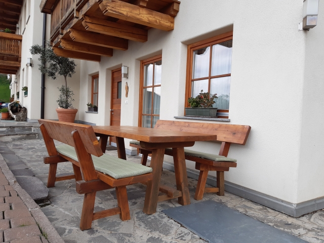 Neu dazugekommen ist 2021 unsere Altholzstube, die wir mit viel Fleiß selbst getischlert haben. Wenn es abends kühler wird oder das Wetter einfach nicht gut ist, lädt sie zum gemütlichen Verweilen ein.